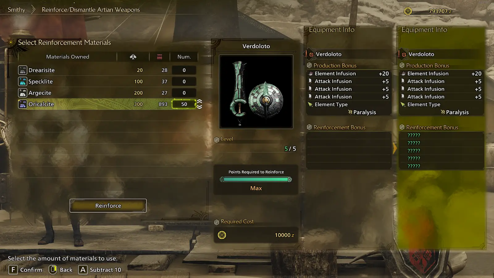 After crafting comes Reinforcing. This is done via the “Reinforce/Dismantle Artian Weapons” Menu option at Gemma.