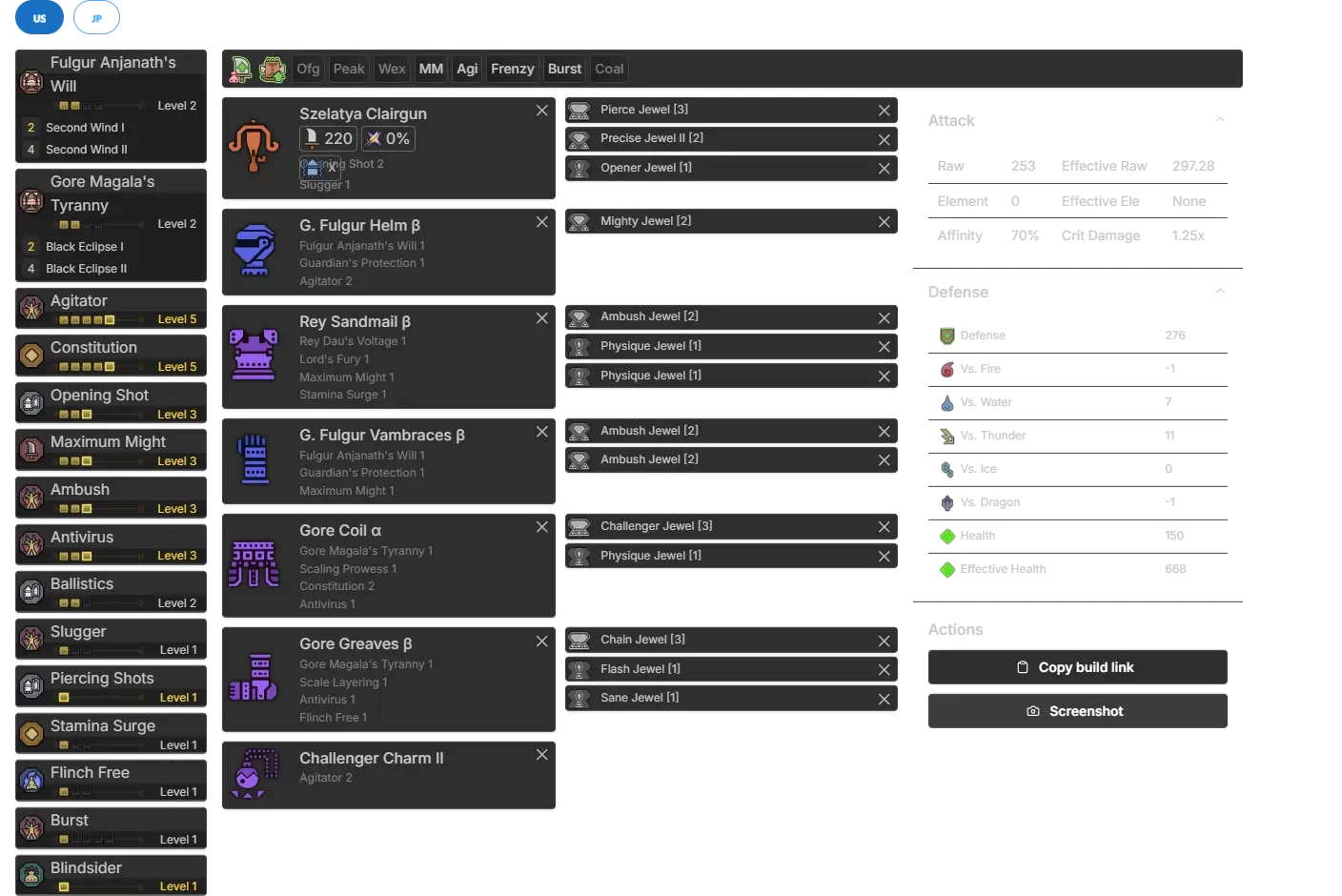 After reaching HR41 and completing Chapter 6, you unlock endgame equipment. The build above is a middle ground between the HR21 Second Wind build and the endgame meta builds, to be used while working towards making meta sets. If you don’t have a Pierce Jewel, use Salvo or Critical Jewel instead.