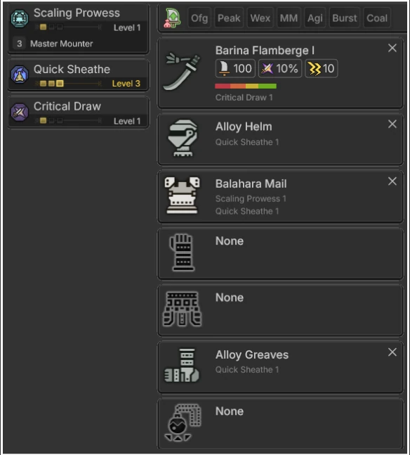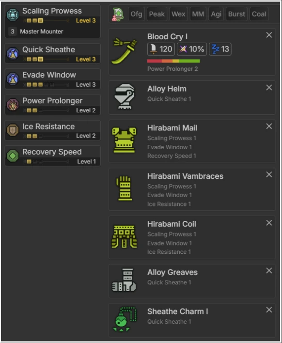 Barebones set to start farming endgame investigations. Slot any good decorations you have, Quick Sheathe is the only mandatory one, Mighty decorations are recommended to slot if possible. From here, move onto the Endgame Build Guide.