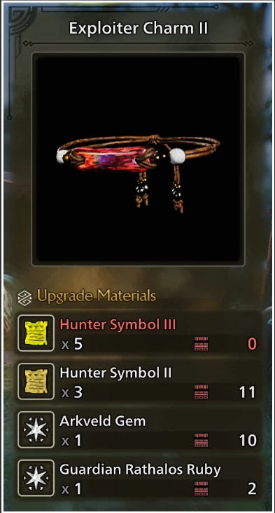 Upgrade your Weakness Exploit Charm, Hunter Symbol III needs Tier 3 Tempered Investigations.